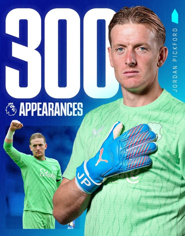 本场比赛亦然皮克福德为埃弗顿在英超第300次出场,此前的比赛中他为球队完成85场零封,场均丢球1.38球。