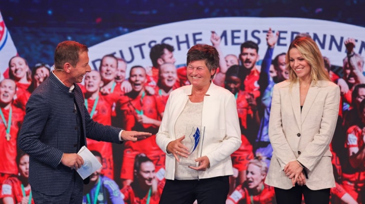 前球员兼耐久司理卡琳-丹纳和梅兰妮-勒普尔兹,代表正在沃尔夫斯堡参加比赛并以3-1奏效的球队继承了这一荣誉。出席受奖典礼的嘉宾包括获奖者鲁梅尼格和拜仁慕尼黑职工乔治-埃默丁格,后者是巴伐利亚最奏效的残疾理解员之一。