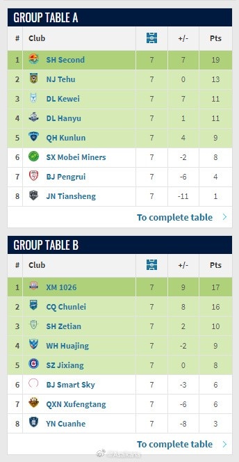 上海赛更达、厦门壹零贰陆别离赢得了两个组的头名,升入来岁中乙