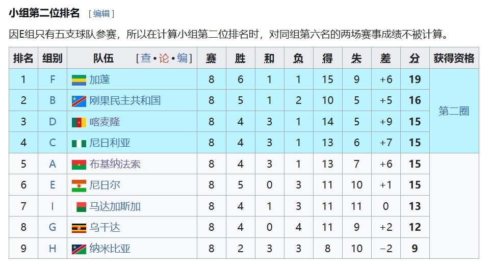 率先由于厄立特里亚辞世初赛开赛前便退赛,导致摩洛哥场地的E组只剩5支球队,因此非洲足联布告,在最佳收获的小组第二名次中,将不论帐算各队与垫底队之间的收获。