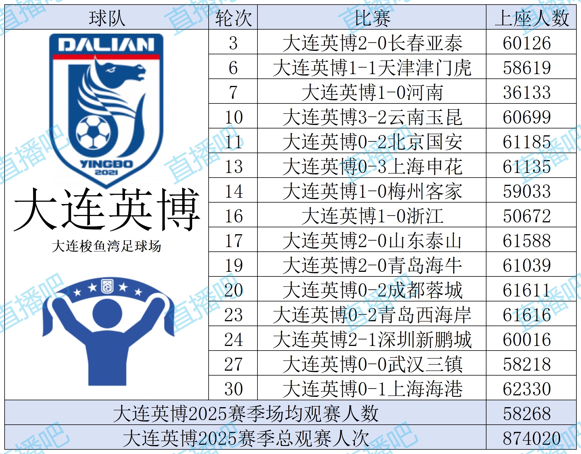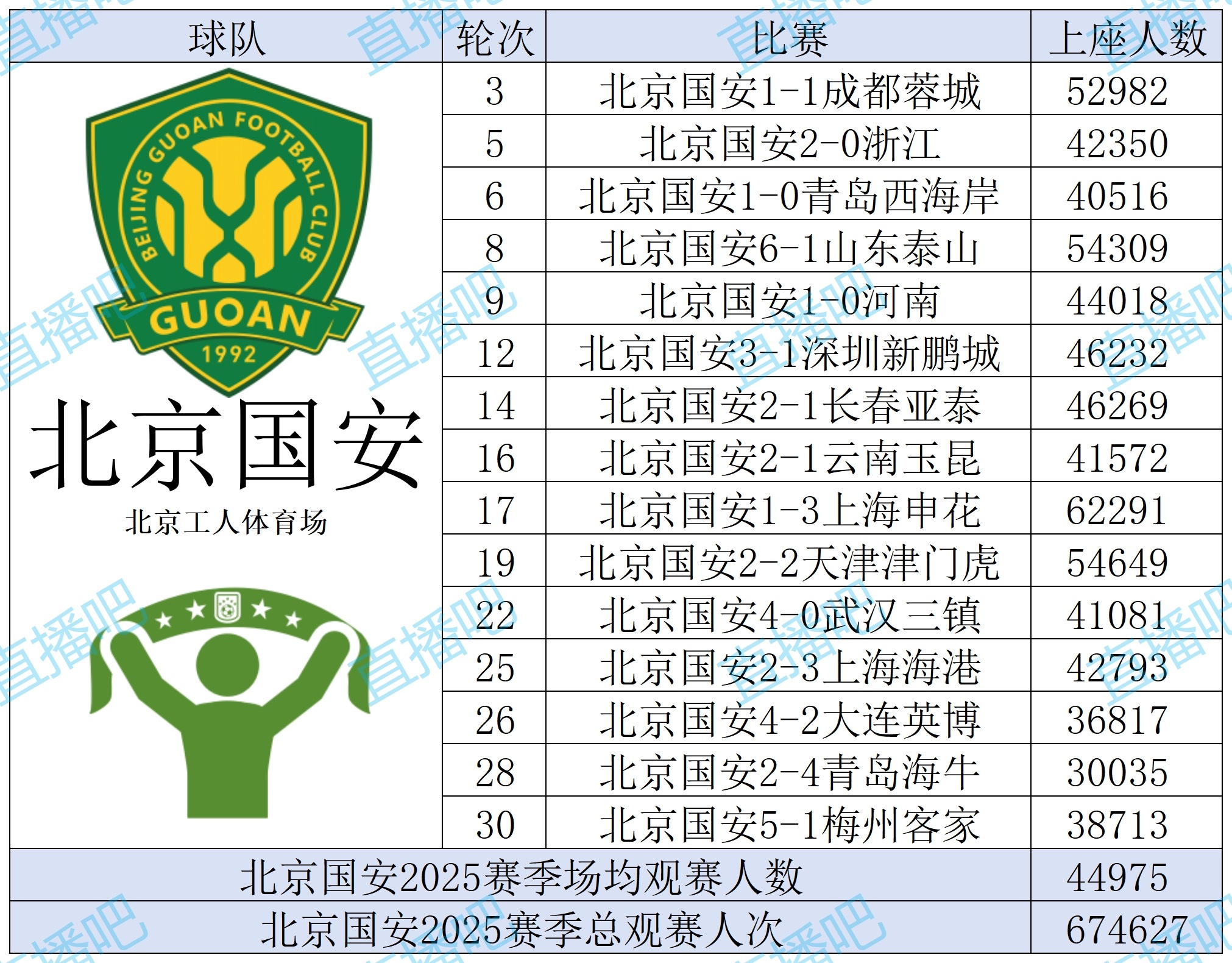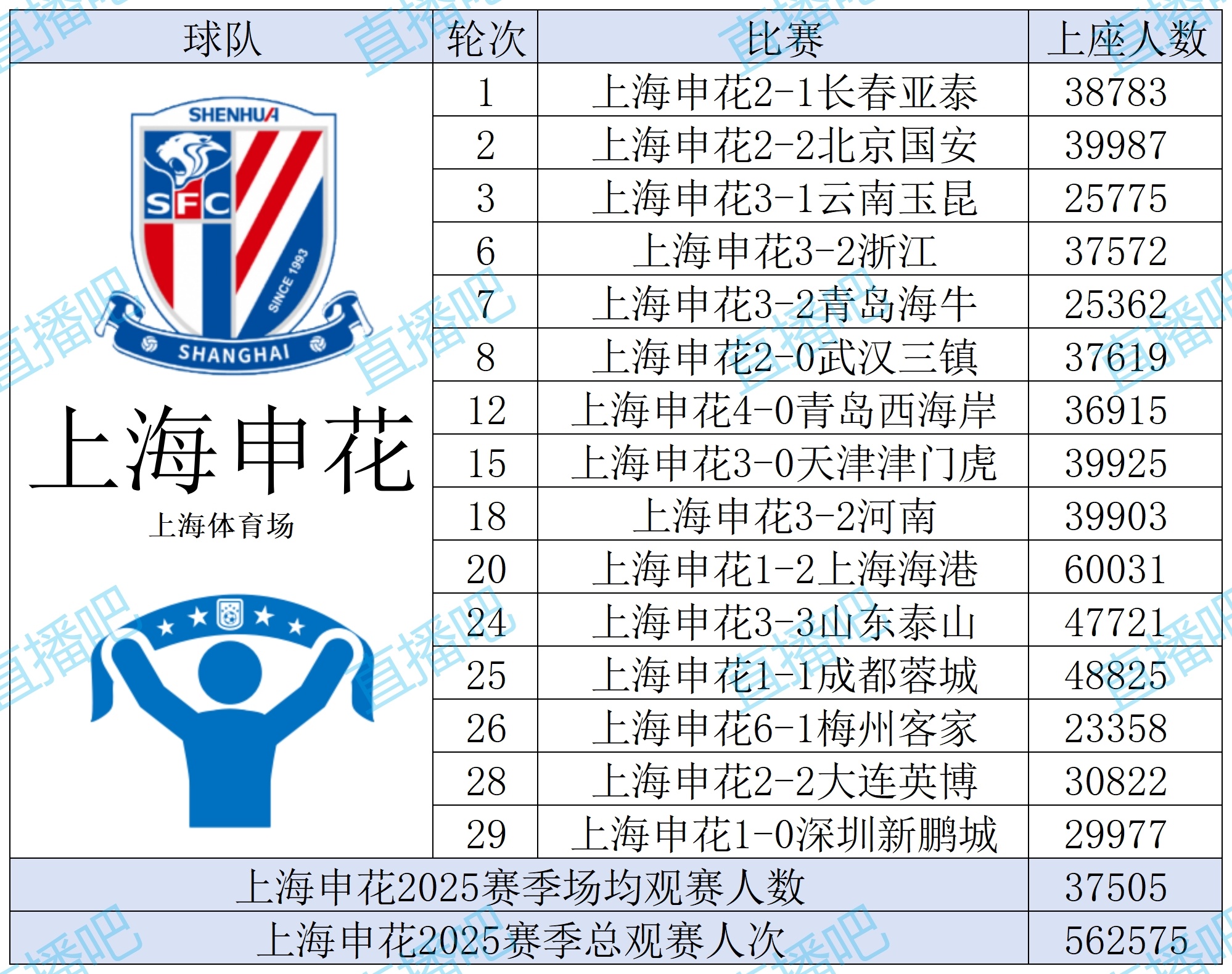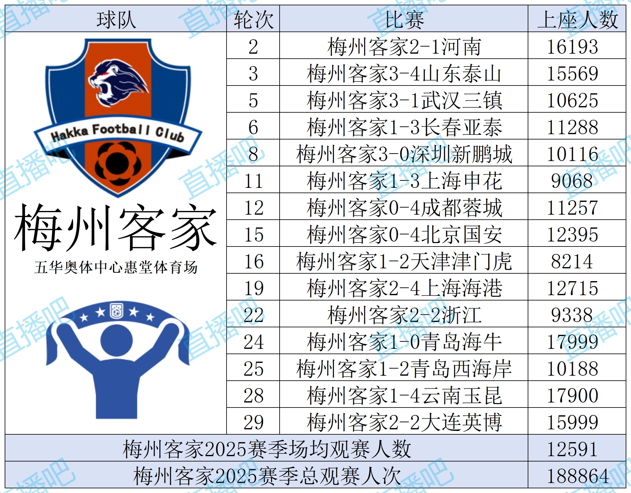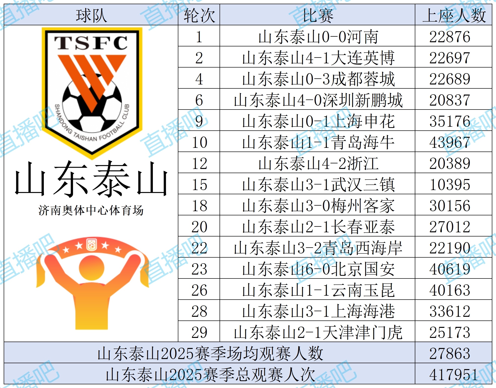 数据看中超|2025赛季16队上座盘货,最多和最少收支70万东说念主次?!