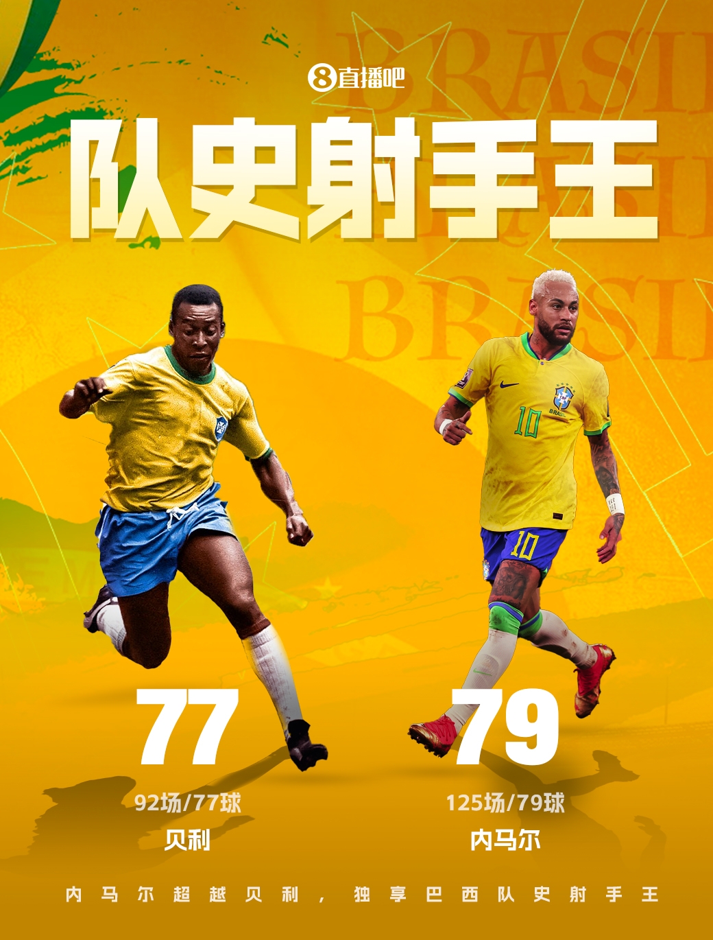 但时于当天,内马尔巴西队128场79球的数据,依然2年多莫得变动。在巴甲踢球的内马尔,仍在为重返巴西而长途粗豪着。