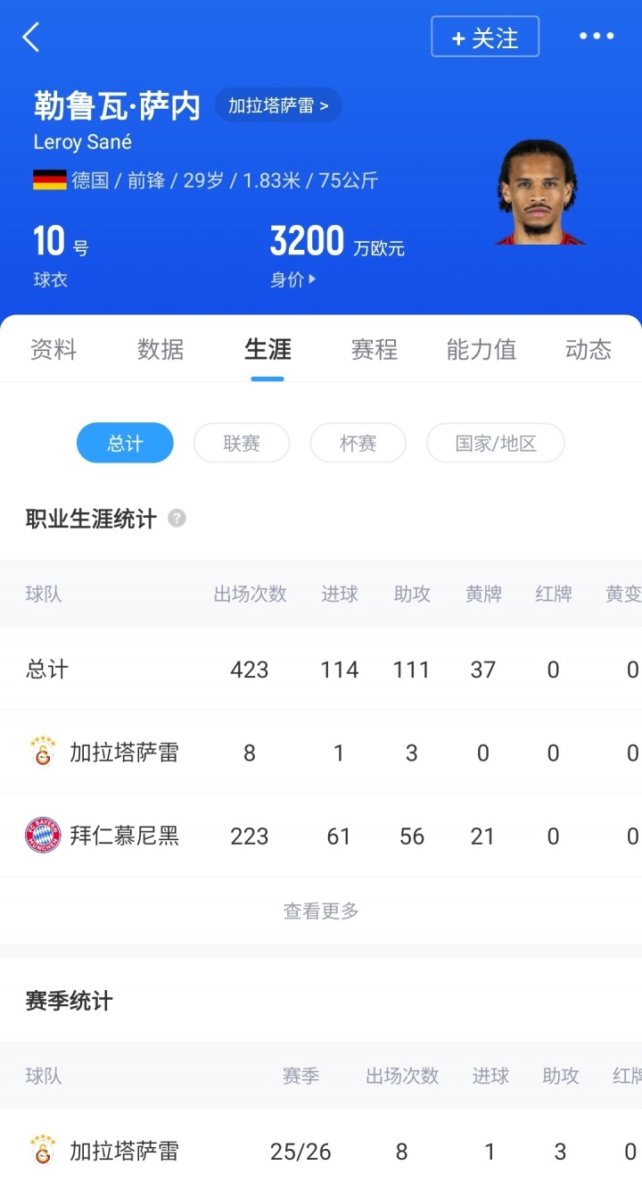 随后萨内领受加拉塔萨雷税后900万欧年薪+300万欧忠心奖金的3年合同。本赛季于今,萨内代表加拉塔萨雷出战8场比赛,孝敬1球3助。