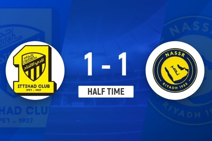 伤停补时5分钟。上半场比赛适度,吉达聚合1-1利雅得得胜。