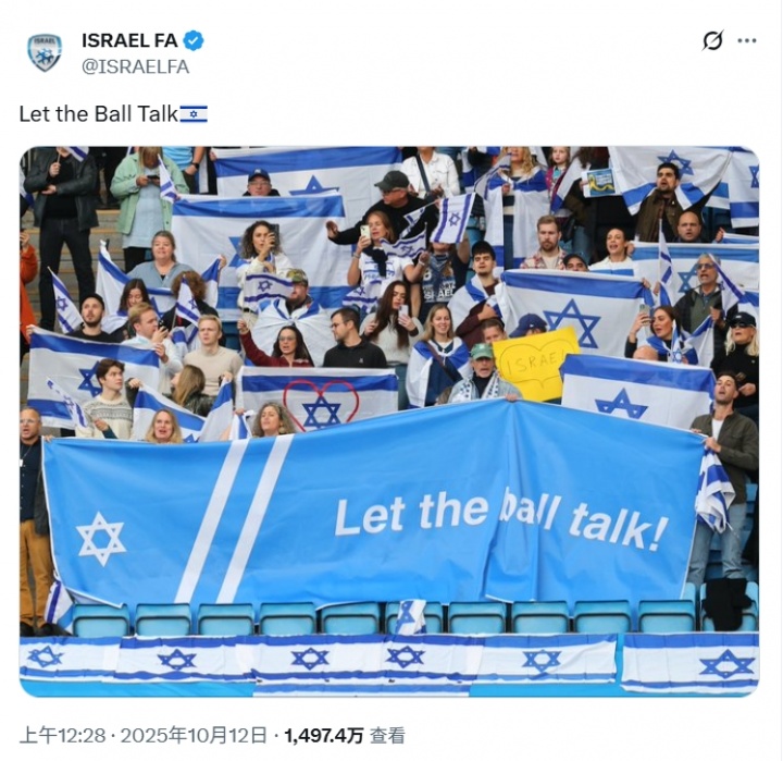 以色列足协援用横幅中的翰墨写说念:“让足球谈话”,意在敕令外界热心比赛而非政事抗议,但以色列最终大比分溃逃,这则帖文赛后也引来了上千条的回复。