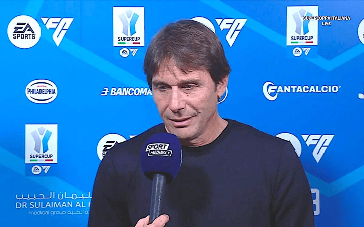 虎扑12月23日讯那不勒斯今天介意大利超等杯决赛2-0礼服博洛尼亚,主教练孔蒂赛后继承了转播商慢镜头电视台的采访。