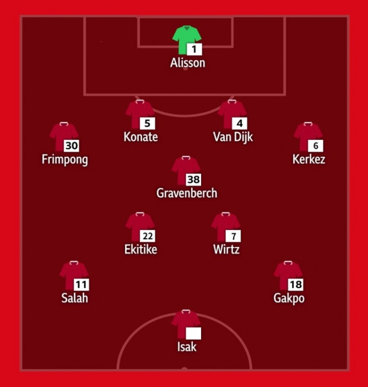 最径直的款式不详是沿用4-2-3-1,让萨拉赫与埃基蒂克内收,置于维尔茨两侧,边路交给弗林蓬和科尔克兹。